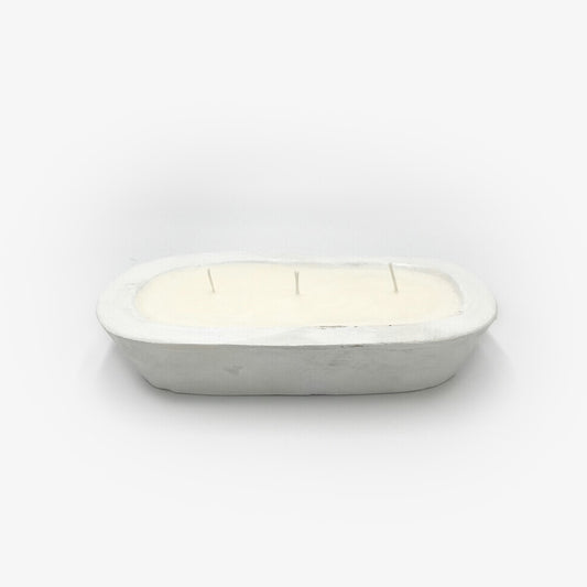 White Finish Oval Dough Bowl Candle